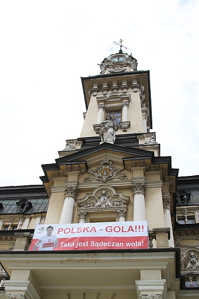 W Nowym Sączu czuć już piłkarską atmosferę EURO 2012. Oprócz chorągiewek i symboli narodowych przyczepianych do samochodów, dzisiaj na sądeckim Rynku pojawiły się ogromne piłki, duża tablica z oficjalnym logo mistrzostw, kolorowe kwiaty, chorągiewki w barwach narodowych Polski i Ukrainy na latarniach wokół ratusza oraz baner na ratuszowym balkonie z hasłem "POLSKA - GOLA!!! TAKA JEST SĄDECZAN WOLA", a z grającej fontanny płyną dźwięki piłkarskich przebojów. Na tym nie koniec. Wkrótce na Rynku staną makiety oficjalnych maskotek turnieju UEFA 2012 Slavek i Slavko.