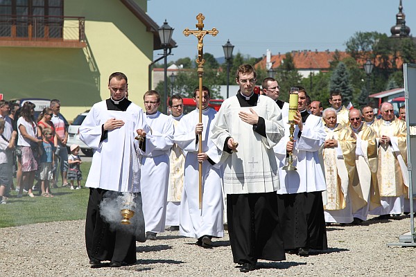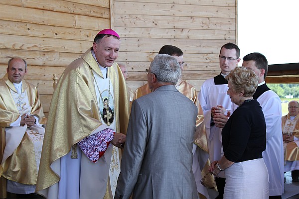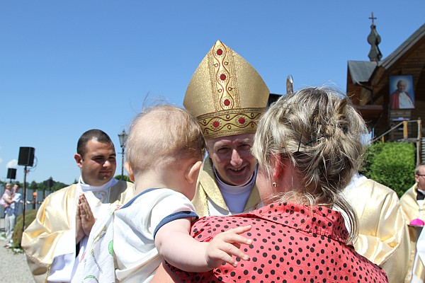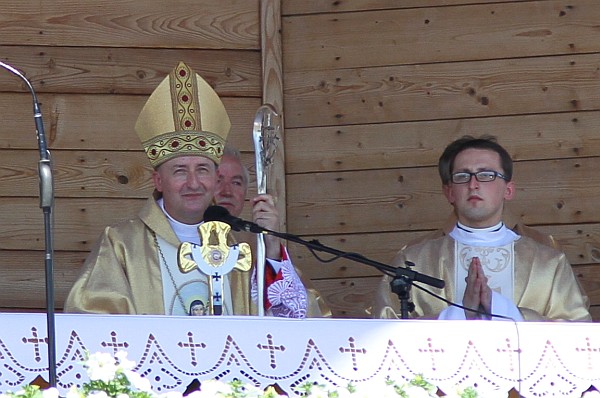 Uroczystej mszy świętej w intencji rodzin przewodniczył ordynariusz diecezji tarnowskiej biskup Andrzej Jeż. Podczas homilii wspominał wizytę Ojca Świętego Jana Pawła II w Starym Sączu oraz podkreślał jak ważną częścią Kościoła jest rodzina. „Niezwykle ważną częścią Chrystusowego Kościoła jest każda rodzina. W niej człowiek poznaje mowę, uczy się pierwszych słów, doświadcza pierwszych uczuć. Zasiane przez rodziców pierwsze ziarna człowieczeństwa mogą później przybierać kształt zdolnego do wydawania owoców drzewa lub, co niestety także pokazuje praktyka, chwastów. (…) Rodzina według zamysłu Bożego jest miejscem świętym i uświęcającym. Rodzina, jak mówi Ojciec Święty Benedykt XVI, jest dobrem dla narodu, nieodzownym fundamentem społeczeństwa, jest wielkim skarbem małżonków na całe życie, jest niezastąpionym dobrem dla dzieci, które powinny być owocem miłości, całkowitego i ofiarnego oddania się rodziców. Na wszystkich spoczywa ogromna odpowiedzialność za głoszenie pełnej prawdy o rodzinie, opartej na małżeństwie jako domowym Kościele i sanktuarium życia – mówił biskup ordynariusz. Mocna duchowo rodzina, może oprzeć się złu i przeciwnościom niesionym przez życie. Nie można obojętnie przyglądać się narzucanym naszemu społeczeństwu trendom, które odzierają człowieka z wszelkiej godności, kuszą owocem sławy i bogactwa, a gdy się ten człowiek potknie, pobłądzi i zaplącze w sieć zła, bez miłosierdzia rzucają go na ziemię, upokarzają i depczą" - podkreślał bp Andrzej Jeż.