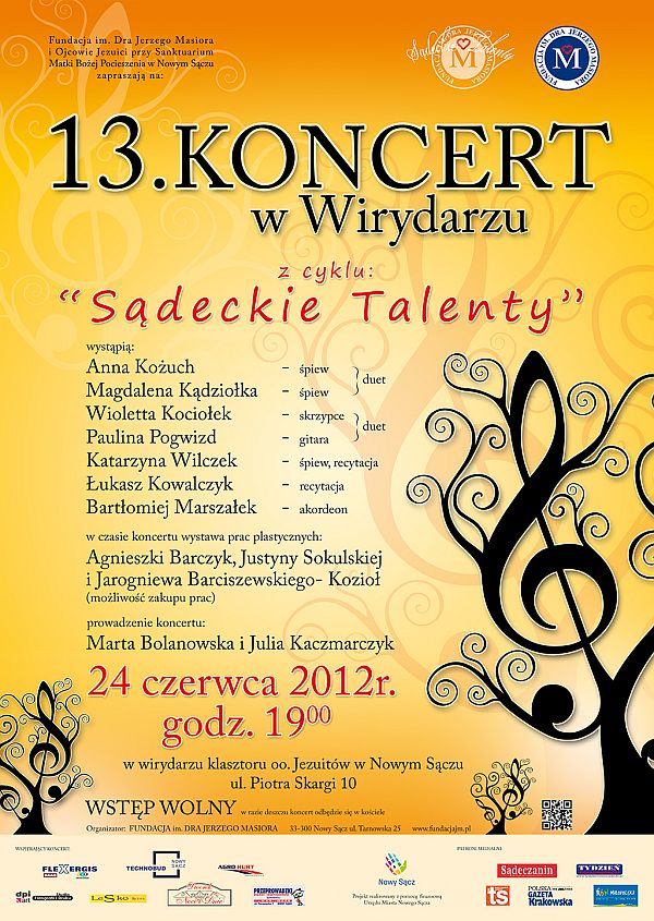 Głównym celem działań Fundacji im. Dra Jerzego Masiora jest promowanie i wspieranie rozwoju utalentowanych artystycznie młodych Sądeczan. Podczas 13 Koncertu w Wirydarzu zaprezentuje się kolejna grupa uzdolnionej artystycznie młodzieży.