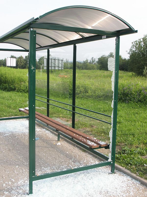 Wiata na przystanku autobusowym została zamontowana w piątek, a w poniedziałek zauważono rozbite dwie szyby. Wstępne koszty naprawy do około 500 zł. Ponadto prawdopodobnie w sobotę lub niedzielę, nieznani sprawcy zniszczyli kładkę wiszącą nad Kamienicą. Powyrywano deski w trakcie ciągu pieszego. Część drewnianych elementów prawdopodobnie wrzucono do rzeki, część leżała poniżej kładki. Straty obecnie są szacowane. W związku z uszkodzeniami, do czasu naprawy, kładka została zamknięta dla ruchu. Ponadto z soboty na niedzielę na ul. Lwowskiej uszkodzono kilkanaście koszy na śmieci.