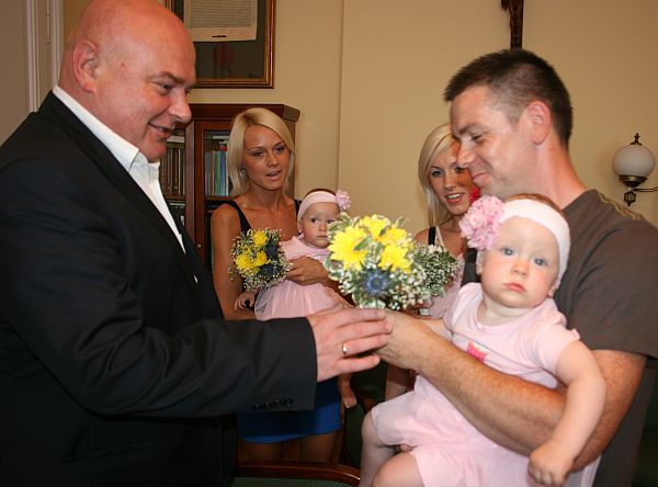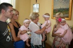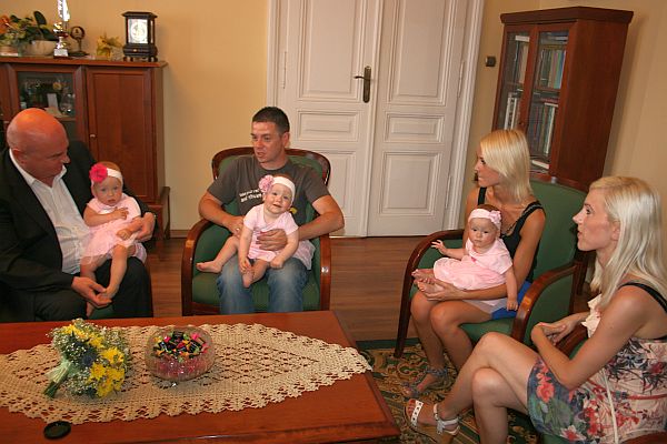 Zuzia, Lena i Tosia - nowosądeckie trojaczki odwiedziły dzisiaj prezydenta Ryszarda Nowaka oraz zastępców Bożenę Jawor i Jerzego Gwiżdża. Okazją były ich pierwsze urodziny. Dokładnie rok temu 3 lipca w krakowskim szpitalu przyszły na świat.Podczas spotkania z prezydentem rodzice opowiadali o dziewczynkach, ich zainteresowaniach i osobowościach. „Zuzia wyraźnie dominuje, Lena jest bardzo konsekwentna, a Tosia uwielbia przeglądać się w lustrze. Dziewczynki są zdrowe,zaczęły raczkować, mówią pierwsze słowa. Dzisiaj wieczorem obchodzić będą swoje pierwsze urodziny w gronie rodziny."Spotkanie w gabinecie prezydenta przebiegało w miłej atmosferze. Dziewczynki opuściły ratusz z urodzinowymi prezentami.