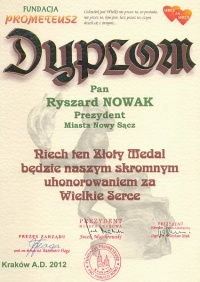 Prezydent Ryszard Nowak został wyróżniony za to, że w Nowym Sączu organizacje pozarządowe realizujące badania diagnostyczne dzieci w wieku niemowlęcym mogą liczyć na wsparcie Urzędu Miasta.