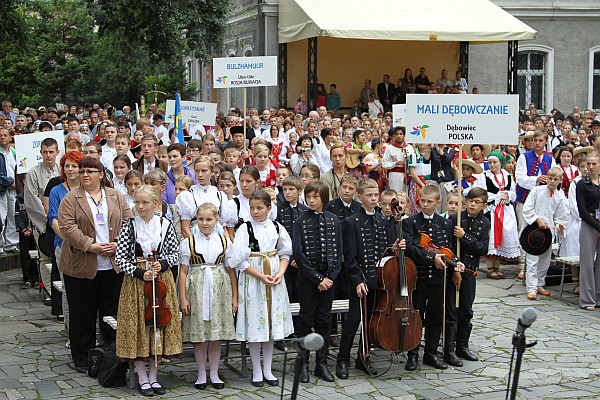 Uroczystą mszą świętą celebrowaną przez ks. biskupa Antoniego Długosza z Częstochowy rozpoczął się wczoraj jubileuszowy XX Międzynarodowy Festiwal Dziecięcych Zespołów Regionalnych ŚWIĘTO DZIECI GÓR. Homilią ilustrowaną obrazkami i piosenkami duchowny zaskarbił sobie serca nie tylko licznie zgromadzonych dzieci, ale i ich rodziców.