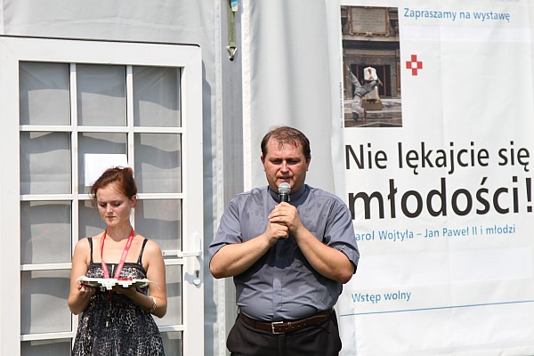 Wiceprezydent Bożena Jawor, radny wojewódzki Leszek Zegzda oraz ks. Jan Siedlarz otworzyli wczoraj wystawę papieską "Nie lękajcie się młodości! Karol Wojtyła - Jan Paweł II i młodzi", prezentowaną w namiocie na placu Starej Sandecji przy Al. Wolności w Nowym Sączu.