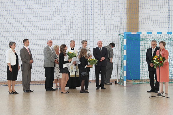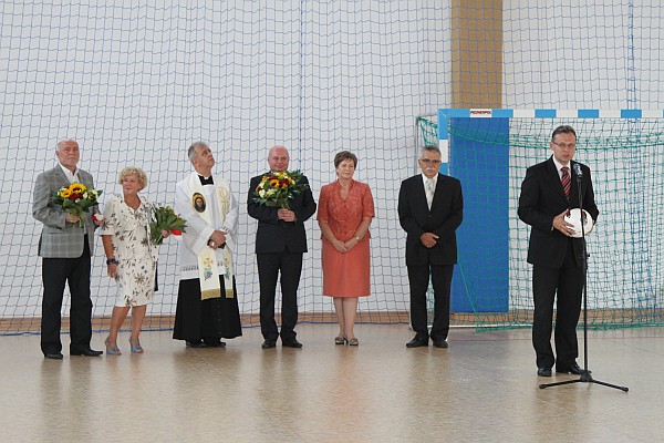 Oficjalne otwarcie hali zbiegło się z rozpoczęciem nowego roku szkolnego. Symboliczną wstęgę przecięli prezydent Nowego Sącza Ryszard Nowak, wiceprezydenci Bożena Jawor i Jerzy Gwiżdż oraz dyrektor Gimnazjum nr 2 Joanna Wituszyńska wraz z dyrektorem SP 3 Andrzejem Hasslingerem. Następnie ks. prałat Jan Piotrowski poświęcił obiekt. Prezydent Ryszard Nowak nie ukrywał radości z otwarcia nowego obiektu sportowego. „Ta hala ma służyć obu szkołom, ma przede wszystkim być dla uczniów i służyć do rozwijania ich pasji sportowych - mówił prezydent. Dziękuję radnym, dyrektorom szkół, przy których znajduje się obiekt, oraz wykonawcom”. Dyrektorzy oraz przedstawiciele Rady Rodziców podziękowali władzom miasta za decyzje, które miały wpływ na powstanie tak funkcjonalnej hali sportowej. Wykonawcy - Firmie Grinbud wręczono pamiątkowy grawerton. Gratulacje przekazali parlamentarzyści obecni na otwarciu hali oraz zaproszeni goście, wśród których znaleźli się radni Rady Miasta, przedstawiciele Kuratorium Oświaty, służb mundurowych, dyrektorzy szkół, projektanci, wykonawcy, uczniowie oraz rodzice dzieci, uczących się w szkołach, przy których powstała hala.