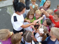 Równocześnie już od pierwszego dnia szkoły strażnicy podzieleni na dwuosobowe grupy, odwiedzali pierwszoklasistów rozmawiając z nimi na temat bezpiecznego poruszania się po drodze. Dzieci poznawały najważniejsze znaki drogowe oraz zasady prawidłowego przejścia przez jezdnię. "Muszę przyznać, że dzieci są dobrze poinformowane. Niewiele maluchów nie zna znaków typu „przejście dla pieszych” – mówi jeden ze strażników. W akcję włączonych było ponad 15 strażników miejskich, którzy pokazywali dzieciom znaki drogowe, rozdawali kolorowanki i wymyślali zagadki.