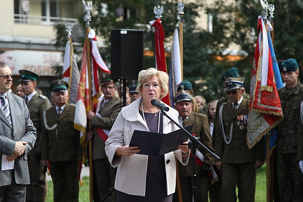 Wiceprezydent Bożena Jawor podziękowała młodzieży za pamięć i tak liczne uczestnictwo w uroczystościach oraz skierowała do zebranych okolicznościowe przemówienie. „Polskie Państwo Podziemne jeżeli chodzi o Armię Krajową, o struktury wojskowe, to fenomen. Czytamy w wielu publikacjach, że był to odruch serca, legenda romantyczna. Na pewno. Ale to, że mieliśmy wspaniałe, akcje, Powstanie Warszawskie, że zbudowano strukturę Armii Krajowej to świadczy o wielkich, umiejętnościach organizacyjnych, doświadczeniu i wielkiej pracy – podkreśliła wiceprezydent. Ważne miejsce w walce o wolność i niepodległość zajmuje I Pułk Strzelców Podhalańskich Armii Krajowej – utworzony rozkazem Komendy Okręgu AK Kraków z dnia 22 września 1944 r. z oddziałów partyzanckich Podhala i Sądecczyzny. Działał na rozległym terenie, od Jasła po Jordanów. Jego dowódcy z majorem Adamem Stabrawą „Borowym” na czele i wszyscy żołnierze, zasługują dziś na naszą serdeczną pamięć i hołd. (…) Warto w tym momencie przywołać fragment wypowiedzi nieżyjącego szefa kancelarii Prezydenta śp. Lecha Kaczyńskiego, Władysława Stasiaka: Polskie Państwo Podziemne pokazało coś niezwykłego. Romantyzm – tak, ale taki romantyzm państwowotwórczy, romantyzm państwowy. Chyba do tego powinniśmy się dzisiaj odwoływać, do mierzenia sił na zamiary – nie bać się tego. Odwoływać się do tego wielkiego doświadczenia Polskiego Państwa Podziemnego, heroizmu, ale też umiejętności, wytrwałości, romantyzmu w budowie polskiego państwa. To jest doświadczenie, którego pewnie nawet trochę nam brakuje w dzisiejszym czasie” – dodała wiceprezydent Bożena Jawor.
