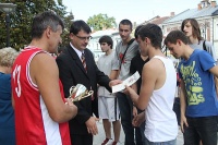 Po meczach finałowych odbył się mecz pokazowy pomiędzy pracownikami Urzędu Miasta Nowego Sącza i nauczycielami wychowania fizycznego Zespołu Szkół Samochodowych. Mecz zakończył się sprawiedliwym remisem 4:4. Na zakończenie turnieju drużyny oraz ich opiekunowie otrzymali z rąk wiceprezydent Bożeny Jawor oraz Dyrektora Zespołu Szkół Samochodowych Andrzeja Góry pamiątkowe dyplomy, medale, puchary i nagrody rzeczowe.