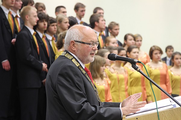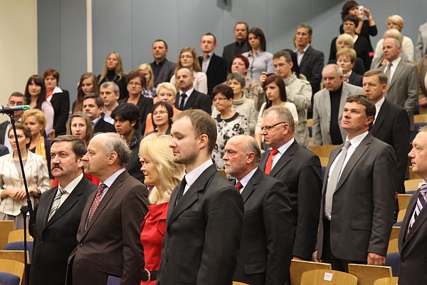 Tradycyjnie, przybyłych gości powitał prezydent WSB-NLU dr Krzysztof Pawłowski, który na zakończenie swojego wystąpienia przekazał łańcuch - symbol uczelnianej władzy - rektorowi dr. Wiktorowi Patenie.