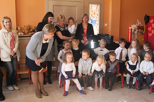 Uroczystego poświecenia placówki dokonał o. Wojciech Łokieć SJ z parafii pw. Ducha Świętego w Nowym Sączu. Wiceprezydent Bożena Jawor przekazując w prezencie figurkę anioła powiedziała „Wierzę, że Anioł Boży będzie was strzegł i będzie waszym opiekunem”. Również rodzice otrzymali pamiątkowe książeczki „Dekalog Błogosławionego Jana Pawła II”. Słodki podarunek dla przedszkolaków przygotowała także pełnomocnik Marta Mordarska.