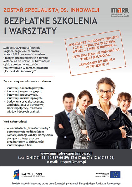 Szczegóły projektu oraz rejestracja na bezpłatny cykl szkoleń znajduje się na stronie www.marr.pl/ekspertinnowacji.html