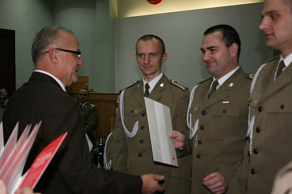 Prezes Małopolskiego Oddziału Okręgowego Polskiego Czerwonego Krzyża za sprzyjanie honorowym krwiodawcom i humanitarnym ideom Czerwonego Krzyża wyróżnia
