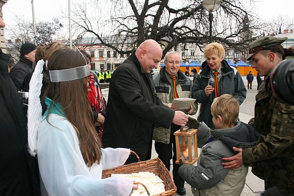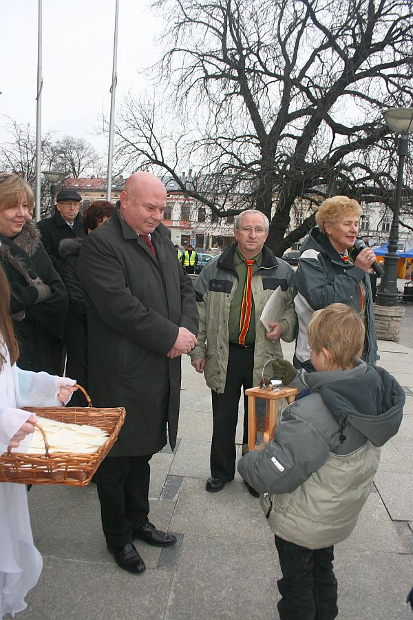 Betlejemskie Światełko Pokoju dotarło już do mieszkańców Nowego Sącza. W niedzielne południe podczas świątecznego spotkania na Rynku harcerze przekazali prezydentowi Ryszardowi Nowakowi Światełko Pokoju. „Niech zapłonie w naszych rodzinach i naszych sercach. Niech te nadchodzące dni będą pełne miłości i ciepła”- życzyli harcerze przekazując Betlejemskie Światełko Pokoju. Następnie ks. prałat Jan Piotrowski pobłogosławił opłatki. „Gromadzimy się jak co roku, żeby złożyć sobie życzenia świąteczne. Ten biały chleb, który pobłogosławię i który weźmiemy do rąk, niech będzie oznaką miłości, jaką niesiemy jako ludzi uświęceni łaską chrztu – powiedział ks. prałat Piotrowski. - Niech w tych naszych życzeniach nie zabraknie szczerej życzliwości, życzeń pokoju, dobra i pokoju serca potrzebnego każdemu człowiekowi” – dodał.