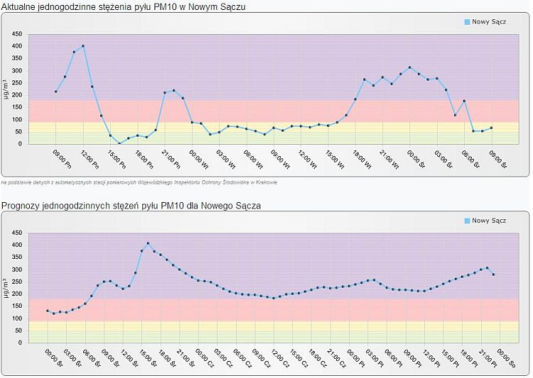 18, 19 i 20 stycznia na obszarze Miasta Nowego Sącza, powiatu gorlickiego, limanowskiego, nowosądeckiego, miasta Zakopane, nowotarskiego i tatrzańskiego, zanieczyszczenie powietrza pyłem PM10 może przekroczyć poziom alarmowy.