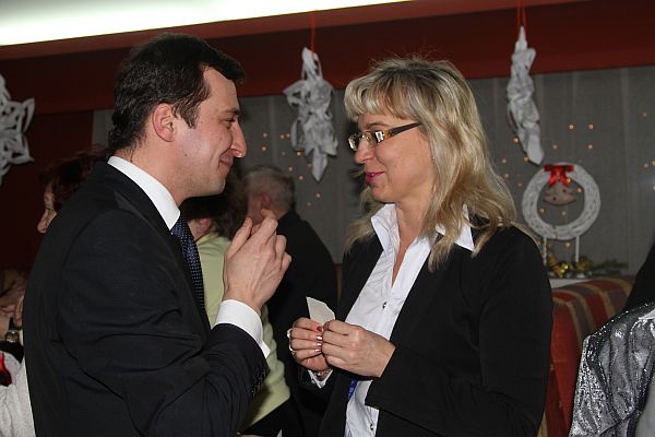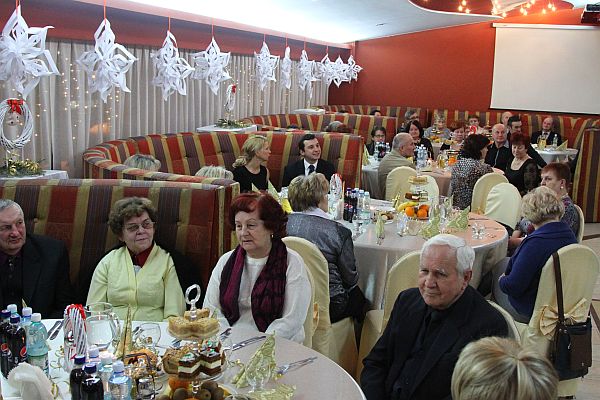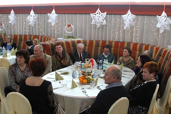 Następnie seniorzy przełamali się opłatkiem i złożyli sobie noworoczne życzenia. Po części oficjalnej oraz świątecznym poczęstunku odbyła się zabawa taneczna.