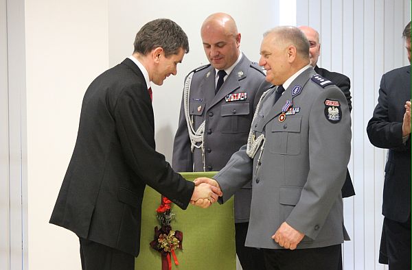Również wojewoda Jerzy Miller skierował do komendanta Henryka Koziała kilka słów. „Wychował Pan dwa pokolenia policjantów. Nie jednego już żegnałem, ale z Pańskim stażem po raz pierwszy. Służył Pan w różnych miejscach, w różnym czasie. Zostawia Pan po sobie również ten budynek, tak nowoczesny, jak przestarzały był poprzedni. To Pana zasługa i Pana sukces. Pana podwładni podkreślają, że zaszczytem było służyć pod Pana komendą. To jest chyba najlepsze, co może spotkać każdego przełożonego.”