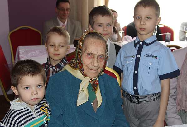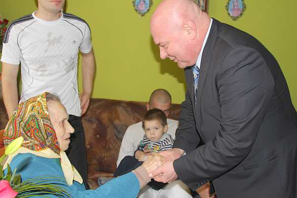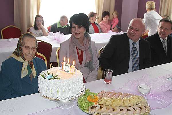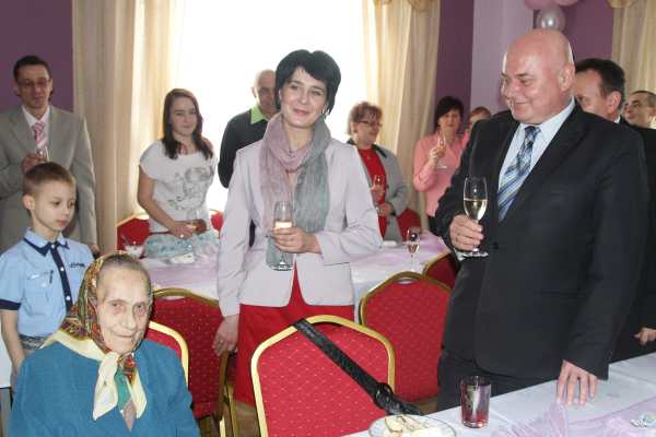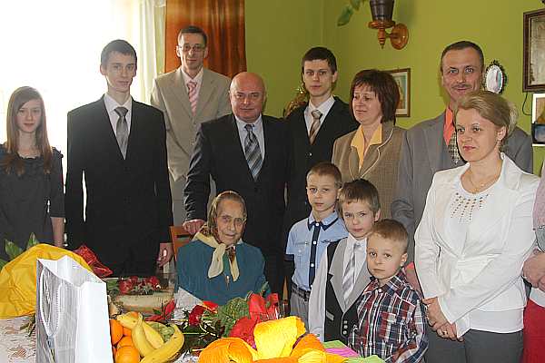 Prezydent Ryszard Nowak złożył najserdeczniejsze życzenia obchodzącej dzisiaj swoje setne urodziny Stefanii Legutko. "Zdrowia, opieki ze strony najbliższych, rodziny, wnuków i wszelkiej pomyślności" – życzył prezydent Jubilatce. Przekazał gratulacje, kwiaty i upominek. Z urodzinowymi życzeniami do Pani Stefanii pospieszyła niemal cała rodzina. Nie zabrakło dzieci – Pani Zofii i Józefa wraz ze swoimi rodzinami, pięciorga wnuków, prawnuków, których Pani Stefania doczekała się już jedenaścioro i praprawnuków: najmłodszej 1,5 rocznej Agnieszki i Przemka. W trakcie rodzinnego spotkania właśnie dzieci otoczyły babcię i odśpiewały jej najlepsze życzenia.