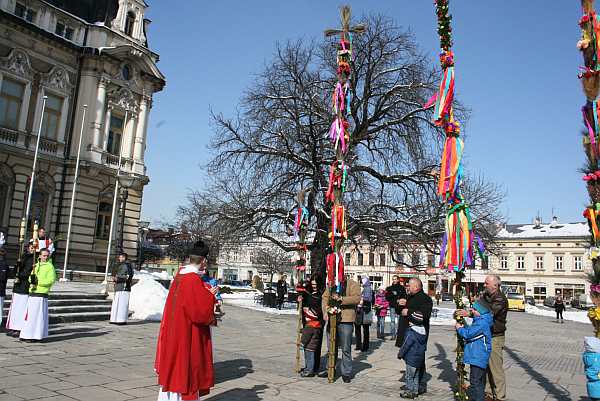 Od poświęcenia palm na sądeckim Rynku rozpoczęły się uroczystości Niedzieli Palmowej w Bazylice Kolegiackiej św. Małgorzaty. Tradycyjnie procesja pod przewodnictwem ks. prałata Jana Piotrowskiego wyruszyła z bazyliki kwadrans przed niedzielną sumą. Ks. prałat na Rynku poświęcił najwyższą palmę zdobiącą sądecki Rynek oraz palmy, które przynieśli mieszkańcy. Następnie odprawiona została msza św., a po niej odbył się konkurs palm wielkanocnych.
