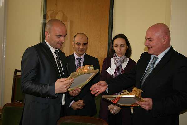 Prezydent Ryszard Nowak powitał członków oficjalnej delegacji z partnerskiego miasta Gabrovo w Bułgarii. To kolejna wizyta kadry zarządzającej Gabrova, która realizuje projekt “Rozwój potencjału ludzkiego – czynnik w rozwoju nowoczesnej europejskiej administracji miejskiej”. Tym razem w projekcie uczestniczą: Zastępca Prezydenta Miasta inż. Kliment Kunew, Sekretarz Polina Tihowa, Przewodniczący Rady Miasta Nikołaj Syrakow i dyrektor Wydziału "Edukacja i działalności społeczne” - Danieła Wasylewa. Prezydent Ryszard Nowak witając gości w Nowym Sączu życzył miłego pobytu w naszym miesicie i wyraził nadzieję, że realizacja projektu przyniesie efekty dla obydwu miast. „Podobną współpracę prowadziliśmy już z naszymi miastami partnerskimi z Niemiec i Słowacji. Można powiedzieć, że ta wymiana doświadczeń, praktyki w urzędach przyniosły efekty. Wierzę, że będzie podobnie, a pobyt w Nowym Sączu zaowocuje wymianą doświadczeń, poznaniem nowoczesnych metod zarządzania i wykorzystania praktyk, które sprawdziły się w funkcjonowaniu naszego urzędu. Jeśli jest okazja skorzystania ze środków zewnętrznych, aby wymieniać doświadczenia - to warto korzystać jak najwięcej” - mówił prezydent Ryszard Nowak. Natomiast zastępca prezydenta Gabrova Kliment Kunew podkreślił, że współpraca pomiędzy Nowym Sączem a Gabrovem dzięki realizacji wspólnego projektu jeszcze bardziej się pogłębi. „Mam nadzieję, że poprzez realizację projektu będziemy mogli znaleźć jak najlepszy model współpracy, że to co teraz realizujemy zaowocuje na przyszłość w postaci współpracy pomiędzy biznesem z Nowego Sącza a Gabrovem. A jest to bardzo ważny projekt, ponieważ dotyczy zarządzania zasobami ludzkimi, podniesienia kwalifikacji pracowników” - dodał zastępca prezydenta Gabrova Kliment Kunew.
