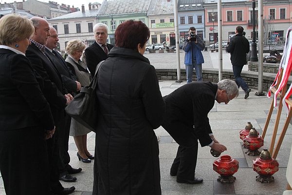 Punktualnie o godz. 8.41 rozległy się syreny alarmowe. Minutą ciszy uczczono pamięć 96 ofiar i złożono kwiaty pod tablicą upamiętniającą honorowych obywateli naszego miasta. Wiązanki kwiatów złożyli : Prezydent Nowego Sącza Ryszard Nowak wraz zastępcami Jerzym Gwiżdżem i Bożeną Jawor, poseł Andrzej Romanek, przewodniczący Rady Miasta Jerzy Wituszyński wraz z wiceprzewodniczącymi Grzegorzem Doboszem i Stefanem Chomoncikiem, Marta Mordarska radna wojewódzka w imieniu Sejmiku Województwa Małopolskiego. Przedstawiciele Policji, Straży Pożarnej, Straży Granicznej i Zakładu Karnego – Paweł Motyka zastępca komendanta PSP, Rafał Leśniak zastępca komendanta Policji, Krzysztof Borończyk zastępca komendanta Zakładu Karnego, Mieczysław Kurek zastępca komendanta SG. W imieniu posłów: Piotra Naimskiego, Andrzeja Czerwińskiego, Mariana Cyconia i Arkadiusz Mularczyka kwiaty złożyli przedstawiciele biur poselskich. Nie zabrakło biało-czerwonych wiązanek kwiatów od przedstawicieli Klubu Radnych Dla Miasta, "SOLIDARNOŚCI" z Andrzejem Szkaradkiem na czele i MKPOiW NSZZ "SOLIDARNOŚĆ", którą reprezentowała Maria Zielińska-Gorzula, przedstawicieli Zarządu Okręgowego PiS oraz sądeckich szkół: Szkoły Podstawowej nr 21, Zespołu Szkół nr4 i Szkoły Podstawowej nr 9 oraz Pałacu Młodzieży. Zebrani zapalili znicze pod portretami prezydentów Lecha Kaczyńskiego i Ryszarda Kaczorowskiego.