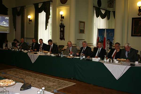 W sali reprezentacyjnej sądeckiego ratusza 3 czerwca 2013 r. odbyło się kolejne posiedzenie Komisji Wspólnej Samorządu Terytorialnego i Samorządów Gospodarczych dla Powiatu Nowosądeckiego i Miasta Nowego Sącza. W posiedzeniu udział wzięli zaproszeni goście, w tym m.in. wiceprezydent Jarzy Gwiżdż, starosta nowosądecki Jana Golonka, regionalny dyrektor ochrony środowiska w Krakowie Rafal Rostecki, dyrektor izby celnej w Krakowie Andrzej Nowak, doradca wojewody małopolskiego Jerzy Meysztowicz, parlamentarzyści – Barbara Bartuś, Anna Paluch, Andrzej Romanek, Andrzej Czerwiński, Marian Cycoń, Piotr Naimski, Andrzej Sztorc, Arkadiusz Mularczyk, Stanisław Kogut oraz sądeccy przedsiębiorcy.