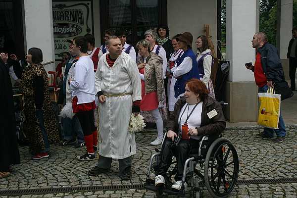 Następnego dnia, mimo rzęsistego deszczu, od rana uczestnicy festiwalu zjeżdżali do Starego Sącza, gdzie w godzinach porannych podwoje dla nich otworzył klasztor Sióstr Klarysek. Zwiedzano Dom Świętej Kingi, a następnie w przyklasztornym kościele odbyła się prelekcja na temat dziedzictwa kulturowego Sądecczyzny z uwzględnieniem działalności Świętej Kingi. Osoby niepełnosprawne mogły obejrzeć wiele zabytków, nawet takich, które nie są eksponowane na widok publiczny każdego dnia. U Sióstr Klarysek uczestnicy festiwalu mieli okazję obejrzeć także koncert i fragmenty spektaklu „Solilandia” przedstawionego przez zespół Promyczki z Nowego Sącza. Spektakl „Solilandia” opowiadający m.in. o postaci Księżnej Kingi powstał przed kilku laty na potrzeby Telewizji Polskiej, do utworów autorstwa poetki Beaty Kołodziej i światowej sławy kompozytora – Joachima Mencla. Koncert wraz z niepełnosprawnymi obejrzała także radna wojewódzka – Marta Mordarska, która zabiegała o środki finansowe z budżetu Województwa Małopolskiego na zorganizowanie Festiwalu Osób Niepełnosprawnych w Nowym Sączu w ramach Małopolskich Dni Osób Niepełnosprawnych. Po spektaklu uczestnicy festiwalowi przenieśli się do hali sportowej przy starosądeckim Gimnazjum im. Juliusza Słowackiego. Tam rozegrano Bieg o Koronę Świętej Kingi, który pierwotnie miał mieć miejsce na ulicach Starego Sącza, jednak padający od dwóch dni deszcz uniemożliwił plenerowe zorganizowanie rywalizacji. Biegano więc pod dachem, z równie wielkim zaangażowaniem i emocjami zawodników. Rozegrano m.in. bieg uczestników na wózkach inwalidzkich. Po zakończonych rywalizacjach sportowych uczestnicy przenieśli się do Diecezjalnego Centrum Pielgrzymowania „Opoka” znajdującego się przy Ołtarzu Papieskim w Starym Sączu. Tam, po obiedzie odbyły się zajęcia warsztatowe. W pierwszej grupie modelarskiej – budowano latawce. Druga grupa plastyczna wykonywała sztandary sądeckie o tematyce lokalnej, historycznej. Trzecia grupa uczestniczyła w panelu dyskusyjnym – Jan Paweł II, Papież Pielgrzym, Papież Pokoju, Papież Integracji Społecznej. W grupie tej sformułowano Apel o pokój na świecie, który przyczepiono do niewielkich karteczek. W godzinach popołudniowych przetarło się niebo i przestał padać deszcz. Tak więc uczestnicy festiwalowi mieli okazję wykonać próby lotów wykonanych latawców, a na stopniach Ołtarza Papieskiego zaprezentowano piękne, kolorowe, sądeckie sztandary, O godzinie 17.00 odbyła się prezentacja lotów latawców, której towarzyszył pokaz lotów modeli samolotów w wykonaniu członków Sądeckiego Towarzystwa Lotniczego. Żeby na niebie zrobiło się jeszcze bardziej kolorowo – uczestnicy festiwalu wypuścili w przestworza balony z Apelem o pokój na świecie. Było to symboliczne wydarzenie w miejscu szczególnym, u bram Beskidu Sądeckiego, z błoń starosądeckich, na których w roku 1999 przebywał Papież Pokoju Jan Paweł II, z miejsca związanego z działalnością Ksieni Kingi, której dziedzictwo kulturowe rozlało się po całej Europie. Podczas tych pokazów nagrodzono także uczestników Biegu o Puchar Świętej Kingi. Główne trofeum wywalczyli uczestnicy festiwalu z Krakowa, a puchar za uczestnictwo w biegu na wózkach inwalidzkich – wywalczyła uczestniczka Ania z WTZ Nadzieja w Nowym Sączu. Po zakończonych dekoracjach zwycięzców, w których uczestniczył Burmistrz Starego Sącza – Jacek Lelek oraz radna wojewódzka Marta Mordarska, odbyło się jeszcze festiwalowe spotkanie przy grillu i kolacja.