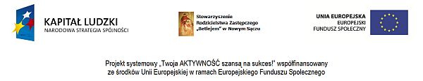 Projekt realizowany jest przez Miasto Nowy Sącz – Miejski Ośrodek Pomocy Społecznej w Nowym Sączu w partnerstwie ze Stowarzyszeniem Rodzicielstwa Zastępczego „Betlejem” w Nowym Sączu w ramach Programu Operacyjnego Kapitał Ludzki, Działania 7.1 – Rozwój i upowszechnianie aktywnej integracji, Poddziałanie 7.1.1 – Rozwój i upowszechnianie aktywnej integracji przez ośrodki pomocy społecznej ze środków Unii Europejskiej w ramach Europejskiego Funduszu Społecznego.