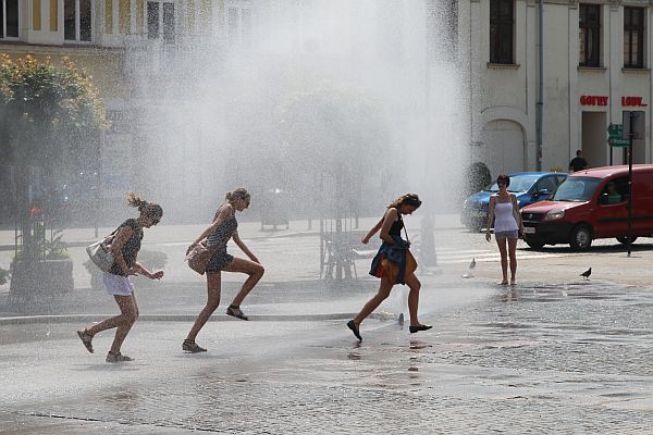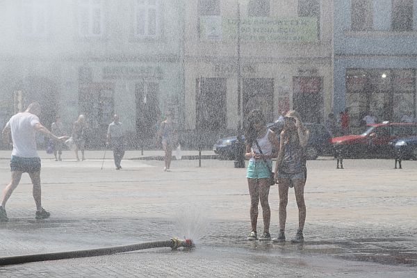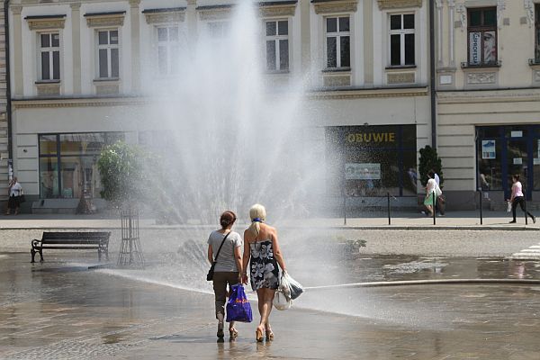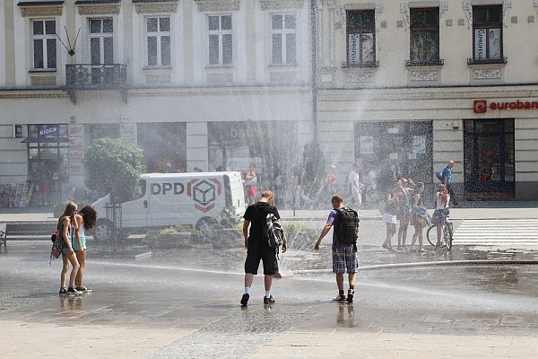 W związku z utrzymującymi się od kilku dni wysokimi temperaturami, na płycie sądeckiego Rynku ustawiono dwie kurtyny wodne. Jak widać na zdjęciach, woda nie tylko chłodzi rozgrzaną płytę Rynku, ale stanowi atrakcję dla mieszkańców.