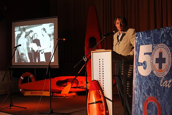 Gości powitał Dariusz Gerhardt, prezes WOPR. O historii organizacji i ludziach z nią związanych mówił Tadeusz Franczak, były prezes Sądeckiego Wodnego Ochotniczego Pogotowia Ratunkowego.