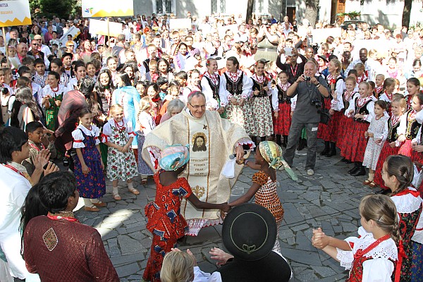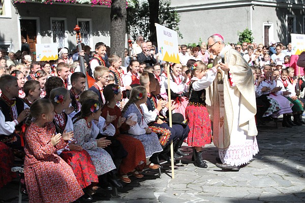 Uroczysta msza św. celebrowana przez ks. biskupa Antoniego Długosza z Częstochowy na placu przy Bazylice św. Małgorzaty w Nowym Sączu rozpoczęła wczoraj XXI Międzynarodowy Festiwal Dziecięcych Zespołów Regionalnych ŚWIĘTO DZIECI GÓR.