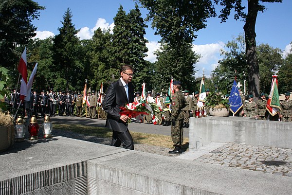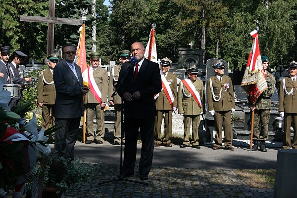 Wiceprezydent Jerzy Gwiżdż w krótkim wystąpieniu przypomniał postać kapłana Ignacego Skorupki, który zginął 14 sierpnia 1920 r . podczas natarcia Wojsk Polskich pod Ossowem. „Kapłan Ignacy Skorupko to symbol Bitwy Warszawskiej. Śmierć ks. Skorupki uświadamia nam, że to zwycięstwo nie wzięło się znikąd, wzięło się z krwi i cierpienia Polaków- mówił wiceprezydent. Możemy być dumni, że uratowaliśmy świat, Europę przed bolszewizmem”. Wiceprezydent odniósł się do słów marszałka Józefa Piłsudskiego, który w 1920 r. mówił „Przyniesienie wolności ludziom z nami sąsiadującymi będzie chlubą mego życia jako męża stanu i żołnierza”. Przypomniał również ważne słowa, które padły z usta marszałka dwa lata później, a które są dedykacją dla współczesnych Polaków i rządzących „Będę dumny z Polski, swoich żołnierzy, siebie samego, jeśli będę mógł tej nieszczęsnej ziemi dać najcenniejszy dar – dar swobody. Będę dumny, gdy ziemia ta godną swobody się okaże, jeżeli zamiast sporów i walk wzajemnych współpraca pomiędzy ludźmi wzniesie to, czego ta ziemia od tak dawna potrzebuje - Polski, silnej swoją jednością”. Na zakończenie wiceprezydent Jerzy Gwiżdż podkreślił, że polska armia ma stać na straży bezpieczeństwa i ma być wolna od wszelkich politycznych nacisków, a żołnierzom i ich rodzinom życzył, aby zawsze wracali do domu.
