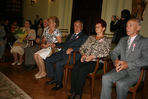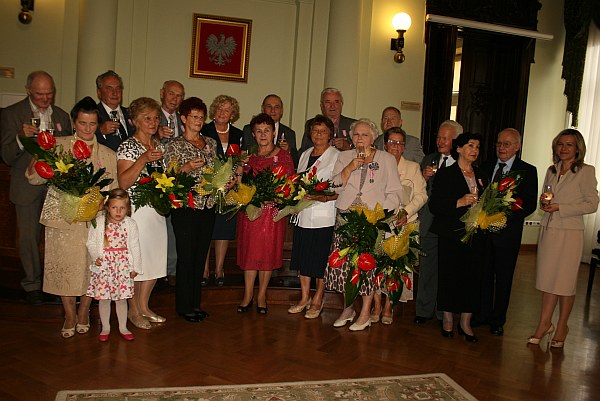 Następnie wiceprezydent Bożena Jawor odznaczyła małżonków "Medalami za długoletnie pożycie małżeńskie" przyznanymi przez Prezydenta RP. Pary w prezencie otrzymały również kwiaty, upominki oraz pamiątkowe albumy.