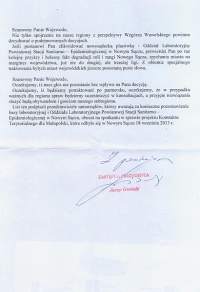 Burmistrzowie, wójtowie, starostwie oraz radni wojewódzcy z regionu sądeckiego, limanowskiego i gorlickiego poparli list skierowany do wojewody małopolskiego Jerzego Millera, przeciwko planowanej reorganizacji bazy laboratoryjnej Państwowej Inspekcji Sanitarnej, której efektem ma być likwidacja m.in. Oddziału Laboratoryjnego Powiatowej Stacji Sanitarno–Epidemiologicznej w Nowym Sączu. List do wojewody wystosowały władze miasta Nowego Sącza, do których to o interwencję zwrócił się w imieniu pracowników sądeckiego oddziału, kierownik Krzysztof Dziedzina.