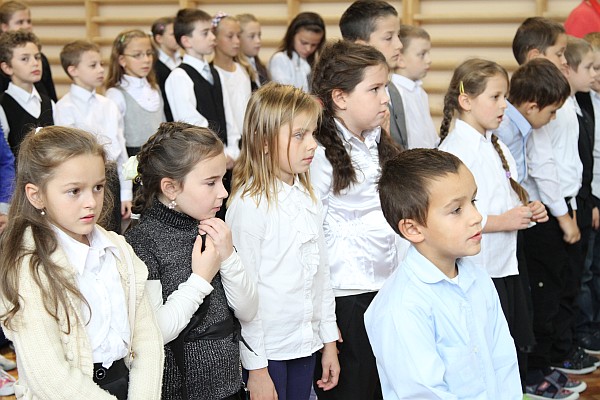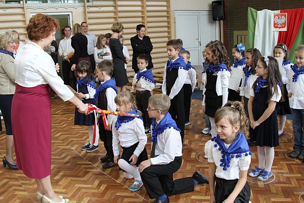 Centralnym punktem uroczystości było ślubowanie klas pierwszych. Pasowania na uczniów dokonała dyrektor szkoły Mieczysława Nieć, a wiceprezydent Bożena Jawor wręczyła pierwszakom dyplomy ślubowania, życząc im samych sukcesów.