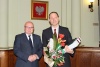 Prezydent Ryszard Nowak dziękując Janowi Firstowi za długoletnią działalność i wkład w rozwój lokalnego rynku pracy wręczył mu pamiątkową statuetkę.