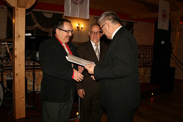 Obecny na uroczystości Jerzy Kornaus z Zarządu Głównego PCK podziękował wszystkim krwiodawcom za najcenniejszy dar, jaki ofiarują bezinteresownie drugiemu człowiekowi. Spotkanie było okazją do podziękowań dla prezesów sądeckiego oddziału - Mieczysława Orczykowskiego i Wojciecha Tady.