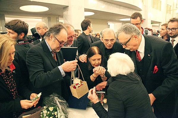Podczas uroczystej gali z udziałem znanych artystów sądeczanie zaprezentowali scenę z „Zemsty” Aleksandra Fredry w reż. Macieja Kujawskiego. Wystąpili w niej: Janusz Michalik - Papkin, Mieczysław Filipczyk - Rejent Milczek i Dorota Kaczmarczyk – Postolina. Trudno się dziwić tremie aktorów, skoro na widowni Teatru Narodowego (już znamienita scena może paraliżować) zasiadła doborowa widownia, z takimi luminarzami polskiego filmu i teatru jak: Beata Tyszkiewicz - przewodnicząca kapituły nagrody Złotego Berła), Janusz Gajos, Ignacy Gogolewski, Olgierd Łukaszewicz, Marta Lipińska, a także niemała grupa sądeczan osiadłych w Warszawie, na czele z animatorem tego wieczoru - Rafałem Skąpskim. Adres gratulacyjny przekazał laureatce również przewodniczący Klubu Przyjaciół Ziemi Sądeckiej, dr Józef Oleksy.