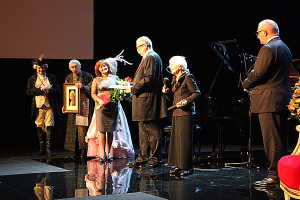 Bohaterka wieczoru mimo sędziwego wieku (w lutym przyszłego roku kończy 99 lat!) błyszczała na scenie, dzielnie dzierżąc berło zaprojektowane przez prof. Krzysztofa Nitscha. Tryskała humorem, a jak przystało na monarchinię przemawiała do widzów w liczbie mnogiej. Przywołała wspomnienia związane z patronem nowosądeckiego teatru i swoim pierwszym spotkaniem ze sceną: