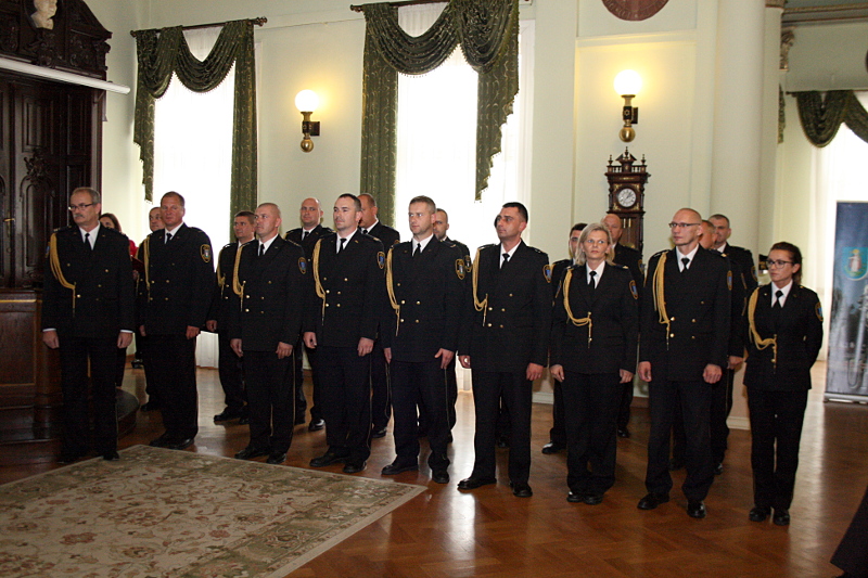 O godz. 14:00 odbyła się uroczysta odprawa w sali reprezentacyjnej sądeckiego ratusza, w której wzięli udział strażnicy z Nowego Sącza i Krynicy - Zdroju. Na spotkaniu obecni byli również: burmistrz Krynicy - Zdroju Dariusz Reśko, wiceprzewodniczący Rady Miasta Nowego Sącza Michał Kądziołka, radni miejscy: Elżbieta Chowaniec, Mieczysław Gwiżdż i Józef Gryźlak, komendant miejski Policji insp. Marek Rudnik, komendant Karpackiego Ośrodka Wsparcia Straży Granicznej płk Mieczysław Kurek, komendant miejski Państwowej Straży Pożarnej w Nowym Sączu st. bryg. Janusz Basiaga, a także komendanci Straży Miejskiej w Nowym Sączu i Krynicy - Zdroju - Adam Kaufman oraz Piotr Szyszka.