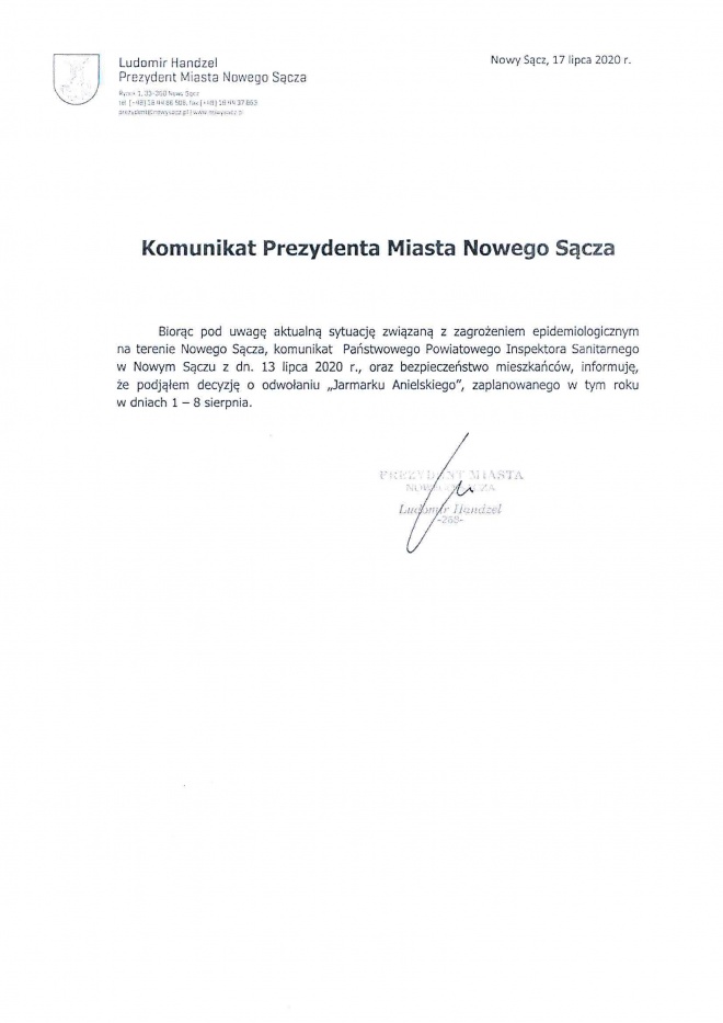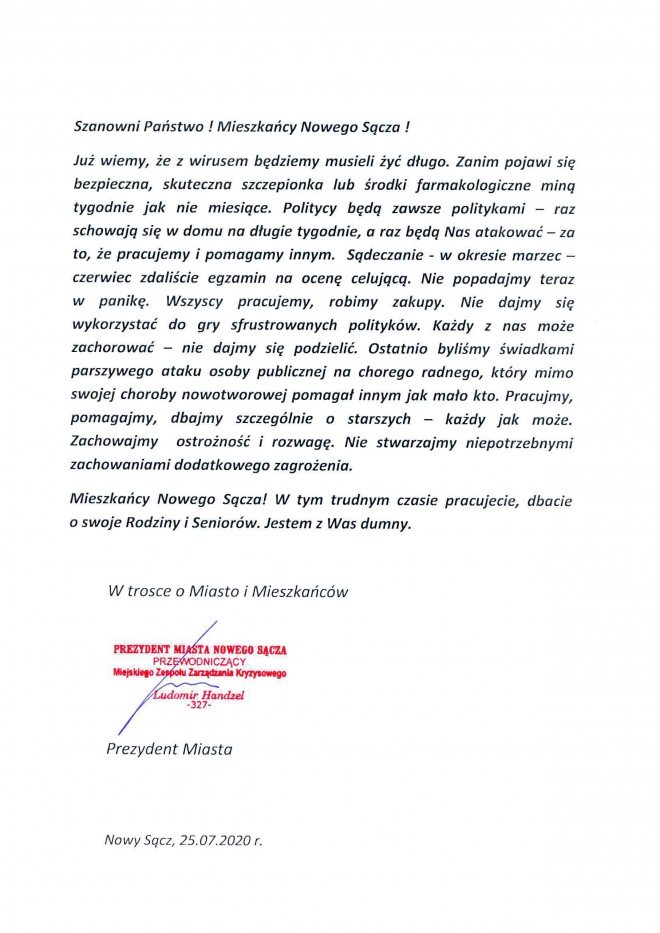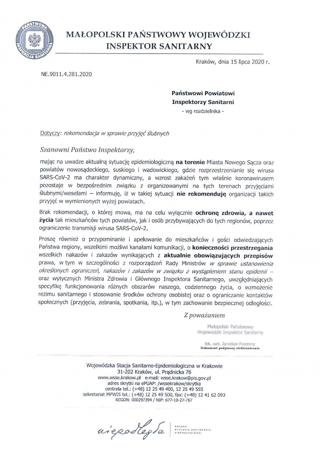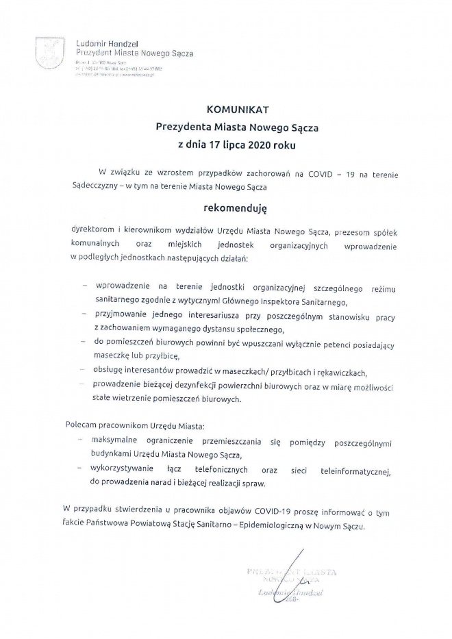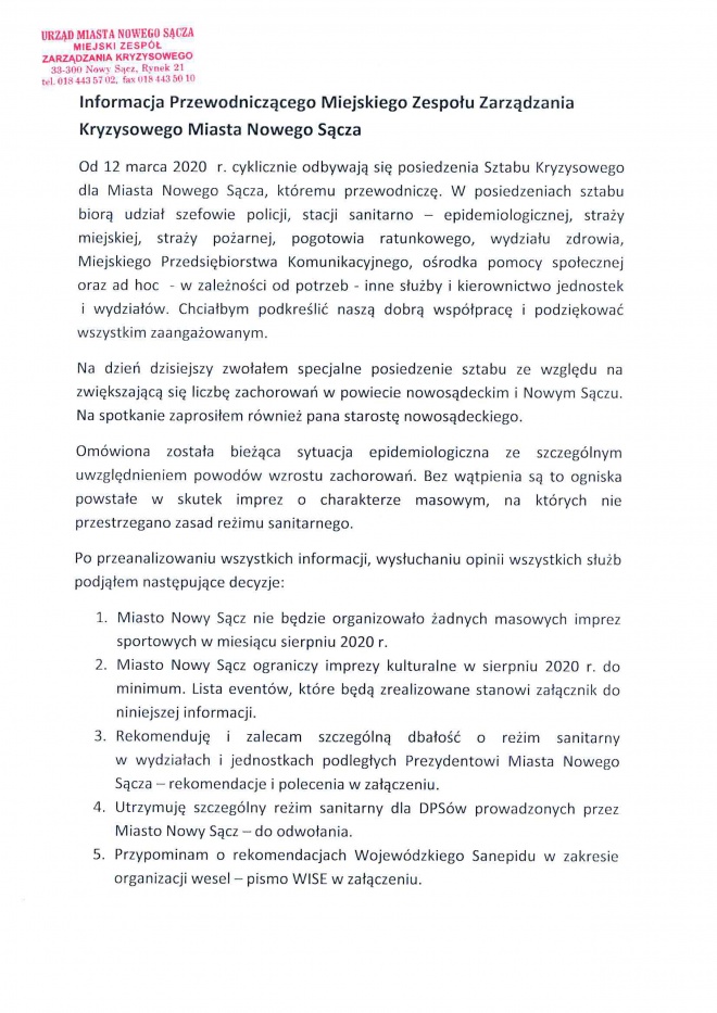 Najważniejsze informacje odnośnie sytuacji epidemiologicznej na terenie Miasta Nowego Sącza.
