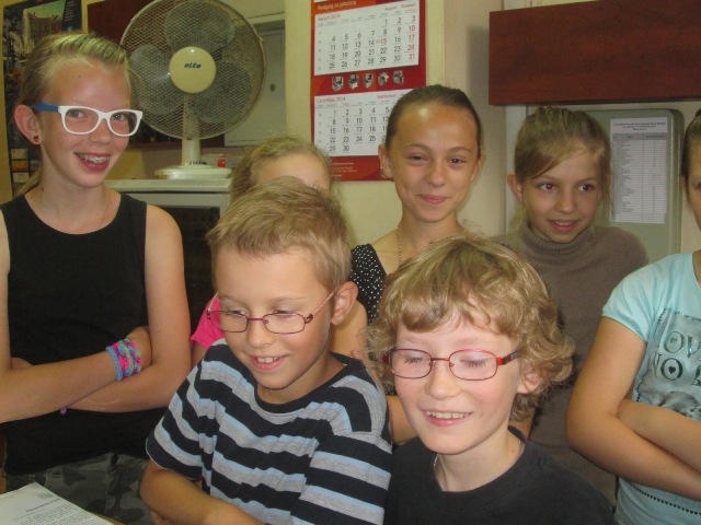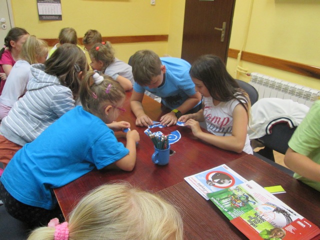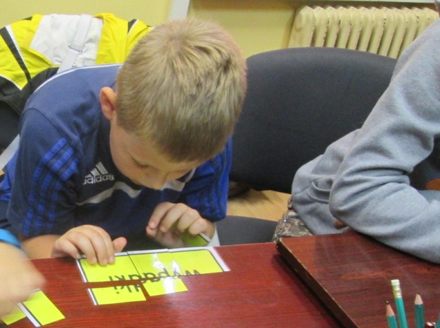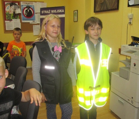 Tuż po godzinie 9.00 do komendy dotarły dzieci z osiedla Westerplatte. Razem ze swoimi wychowawcami ze świetlicy środowiskowej zwiedziły niemalże każde pomieszczenie, porozmawiały nawet z pracownikami administracji. Oprócz dzieci z Westerplatte, mieliśmy przyjemność gościć także najmłodszych mieszkańców Zabełcza, Biegonic, Millenium i Wólek. Uczniowie byli w przeróżnym wieku, jednak wszystkich tak samo interesowała praca strażników. Dopytywali się, czym strażnicy poruszają się w czasie służb, za co dają mandaty, a kiedy tylko spisują dane rozmówcy czyli legitymują. Byli też tacy, którzy zaskoczyli nas swoją wiedzą – Ja wiem, że można dostać mandat, za nieuczciwą walkę na ringu – wykrzyknął jeden z chłopców. Inni zauważyli, ze w komendzie stoją puchary za grę w piłkę nożną – O! ja też gram w piłkę, ale nie słyszałem nigdy o drużynie straży miejskiej. Choć pogoda nie dopisała, to w Komendzie nie słychać było skarg, czy niezadowolenia. Nasi goście wypełniali raporty służby, jak dorośli strażnicy. Mieli też okazję wypisać sobie mandat. Tradycyjnie już sprawdziliśmy ich wiedzę na temat bezpiecznego poruszania się po drodze. Podzieleni na grupy rozwiązywali krzyżówki, układali puzzle, oraz łączyli ze sobą hasła dotyczące bezpieczeństwa w sieci. Każda grupa spędziła razem ze strażnikami niemalże pełną godzinę, dzięki czemu z bliska przyjrzała się ich codziennej pracy.