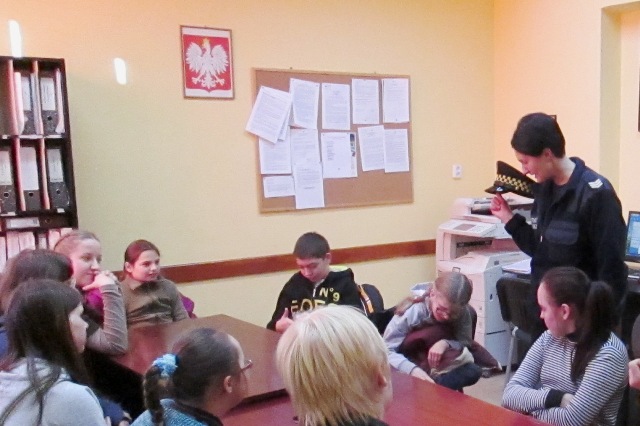 Na sali odpraw komendy dzieci miały okazję zobaczyć kajdanki, tonfę oraz mundur strażnika odpowiedni do różnych zadań. W czasie wizyty podopiecznych z ośrodka padały różne pytania dotyczące obowiązków strażników oraz sprzętu, jakim się posługują.
