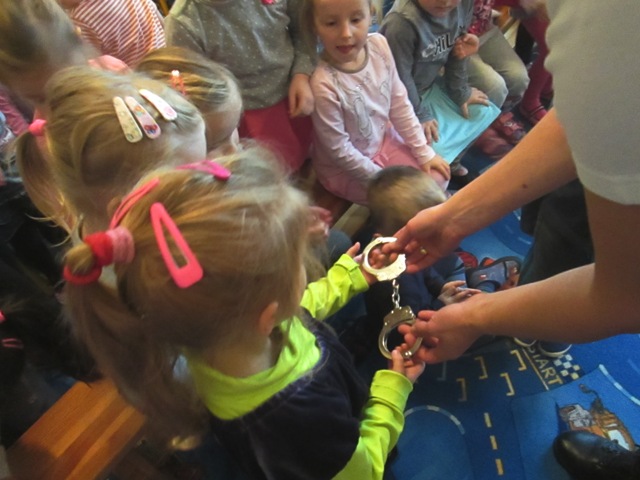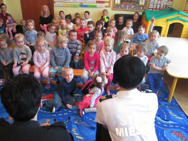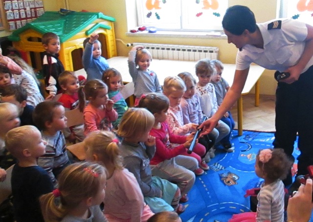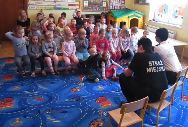 Strażniczki przeprowadziły prelekcję w czterech grupach, w dwóch budynkach przedszkola. W czasie spotkań maluchy zadawały pytania dotyczące pracy strażniczej i sprzętu, który jest na stanie komendy. Funkcjonariuszki wyjaśniły dzieciom, że jest kilka rodzajów umundurowania strażnika miejskiego, wytłumaczyły dlaczego zawsze przy sobie noszą tonfę, kajdanki i gaz. Największą atrakcją była możliwość przymierzenia czapki strażniczej i obejrzenia z bliska kajdanek.