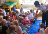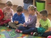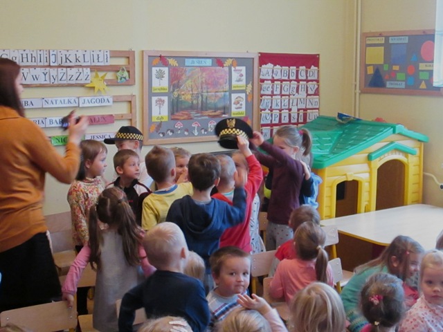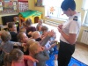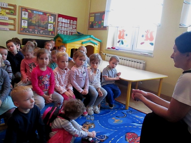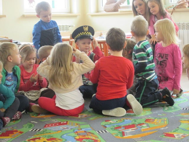 Rozmowa z najmłodszymi dotyczyła między innymi zwierząt, jakie mają w domach oraz obowiązkach jakich one wymagają. Większość przedszkolaków wiedziała, że idąc z psem na spacer powinniśmy po nim sprzątać i trzymać go na smyczy. Dzieci bardzo chętnie rozmawiały też na temat bezpiecznego zachowania się w przedszkolu, w czasie zabawy i na drodze.