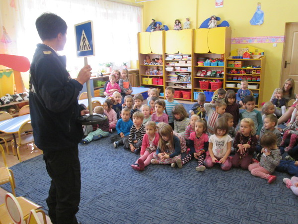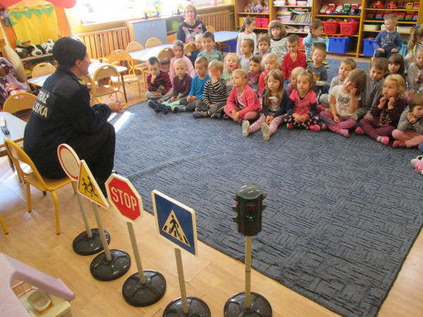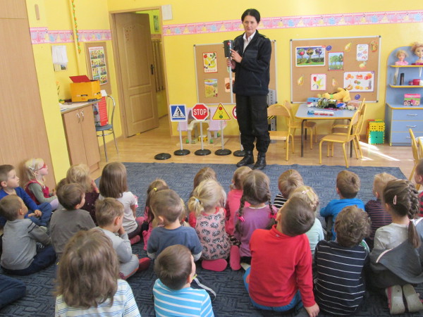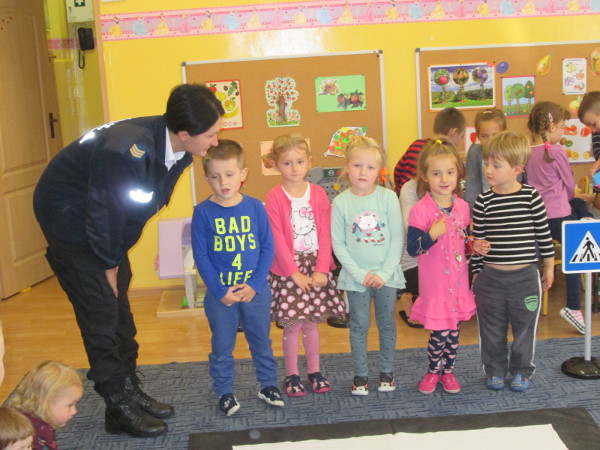 Zainteresowanie wzbudziła prezentacja znaków drogowych, sygnalizatora drogowego zmieniającego kolory, jak i praktyczne przejście na drugą stronę ulicy przez „przenośne” pasy. Jednak największą atrakcją okazała się niespodzianka na koniec: każdy mały uczestnik otrzymał odblaskową zawieszkę, która będzie stanowić ochronę poprzez zwiększenie widoczności na drodze.