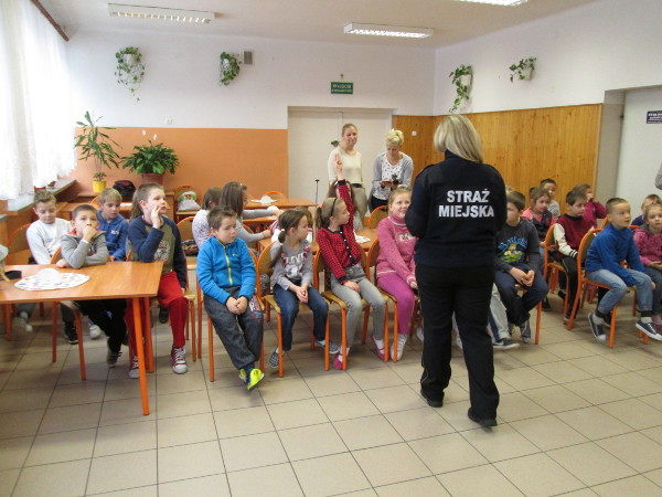 Strażnicy miejscy odwiedzili 27 listopada 2015 roku Szkołę Podstawową nr 9 w Nowym Sączu. Celem wizyty było zapoznanie dzieci z zasadami zachowania bezpieczeństwa w ruchu pieszych na drodze. W spotkaniu brało udział blisko 60 uczniów. Dzieci wykazały duże zainteresowanie i aktywnie uczestniczyły w zajęciach. Na koniec otrzymały drobne upominki odblaskowe, mające poprawić ich widoczność na drodze. Podczas spotkania ze strażnikami maluchy i starszaki mogły zadawać pytania i dowiedzieć się, jak zachować się w sytuacjach niebezpiecznych. Prowadzący opowiedzieli o tym, jak prawidłowo przechodzić przez jezdnię i udzielali dzieciom wskazówek - co mogą zrobić, aby zwiększyć swoje bezpieczeństwo. Zainteresowanie wzbudziła prezentacja znaków drogowych, sygnalizatora drogowego zmieniającego kolory, jak i praktyczne przejście na drugą stronę ulicy przez „przenośne” pasy.