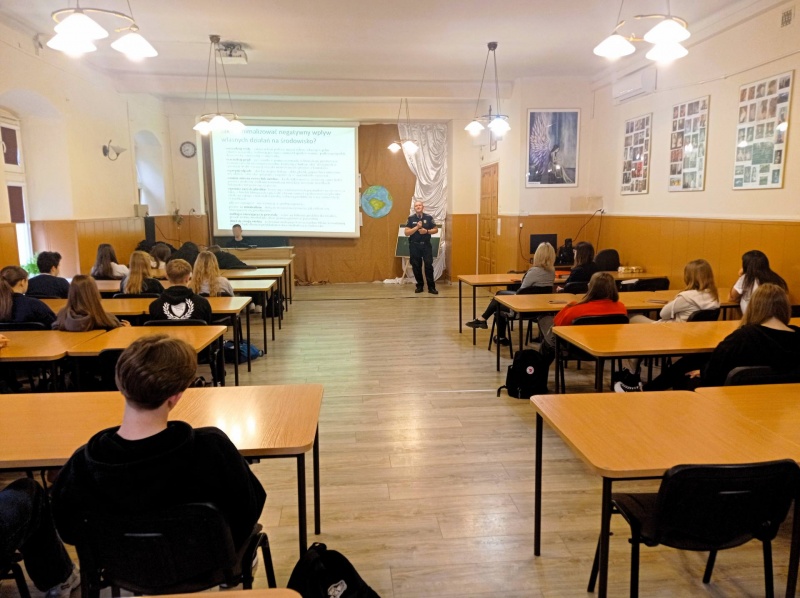 W prelekcji udział wzięła młodzież z klas I i IV. Po zakończonych zajęciach strażnicy przekazali dla uczestników warsztatów małe, ekologiczne upominki, przekazane przez Wydział Środowiska Urzędu Miasta Nowego Sącza.