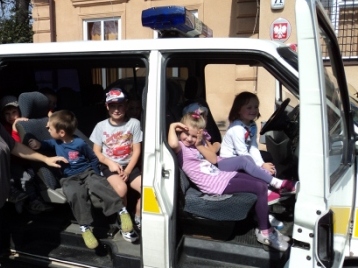 Największą atrakcją dla sympatycznych gości był wóz straży miejskiej, w którym z bliska obejrzały cały sprzęt