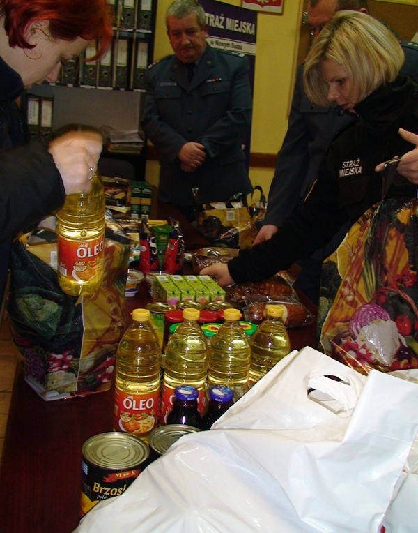 Komenda Straży Miejskiej i Zakład Karny w Nowym Sączu przy udziale Wiceprezydenta Miasta Nowego Sącza Jerzego Gwiżdża przeprowadziły w szeregach swoich pracowników zbiórkę pieniężną, przeznaczoną na paczki świąteczne dla najbardziej potrzebujących mieszkańców miasta. Rodziny wytypowane zostały przez dzielnicowych Straży Miejskiej, którzy w celu wyznaczenia konkretnych osób nawiązali kontakty m.in. ze szkołami, przewodniczącymi zarządów osiedlowych czy świetlicami środowiskowymi. – Zwłaszcza w tym świątecznym okresie, powinniśmy pamiętać o najuboższych – wyjaśnia Komendant KSM Adam Kaufman. Dzięki współpracy Zakładu Karnego, Komendy Straży Miejskiej i Wiceprezydenta Jerzego Gwiżdża sześć rodzin otrzymało pokaźne paczki żywnościowe, w których znalazły się nie tylko rzeczy niezbędne, jak np. ryż, wędliny, kakao, barszcz czerwony czy olej, ale także słodycze i soki. Zakupioną żywność zapakowali wspólnie Wiceprezydent Miasta Jerzy Gwiżdż, Kierownictwo Służby Więziennej i strażnicy miejscy na czele z Komendantem. – Postaraliśmy się choć w małym stopniu uprzyjemnić komuś okres Świąt Bożego Narodzenia. Szkoda, że nie możemy zaspokoić wszystkich potrzebujących – dodał komendant.