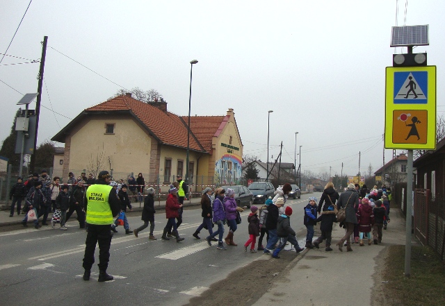 Uczniowie Szkoły Podstawowej nr 14 w Nowym Sączu, którzy uczęszczają na rekolekcje adwentowe w pobliskim kościele mają do pokonania ulicę Węgierską.